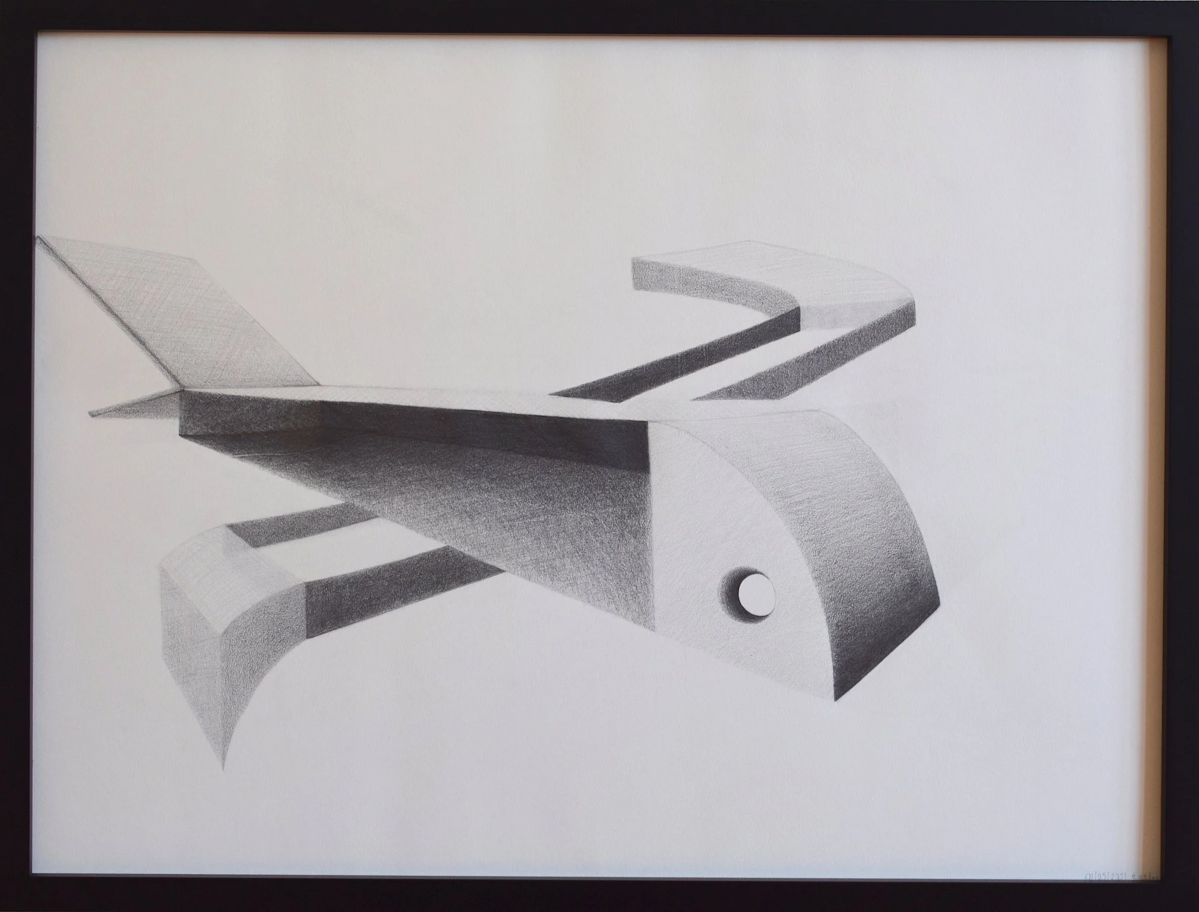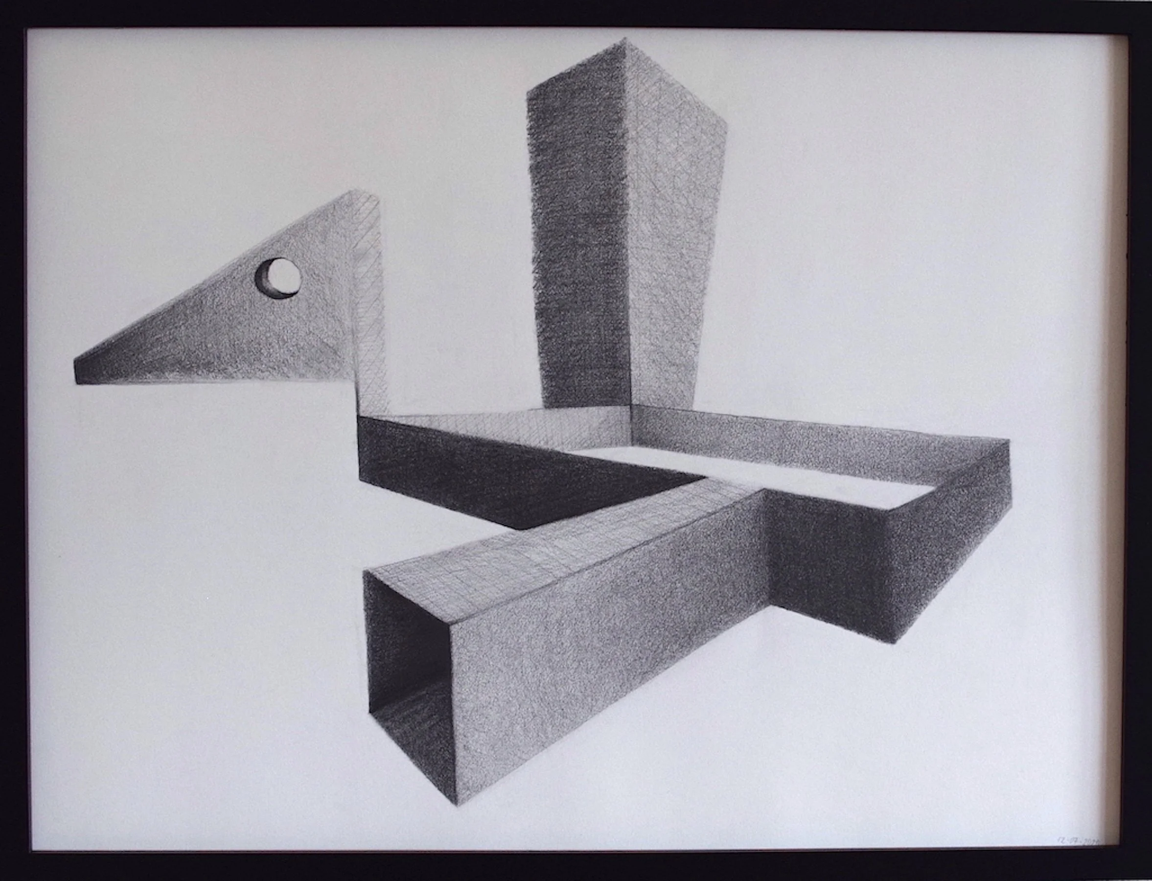 Graphite and paper on black frame
